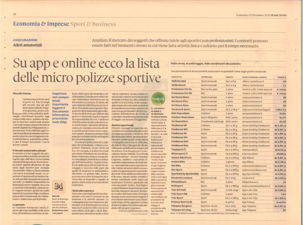 Sei in: Home1 / pubblicazioni ed interviste2 / Su app e online ecco la lista delle micro polizze sportive